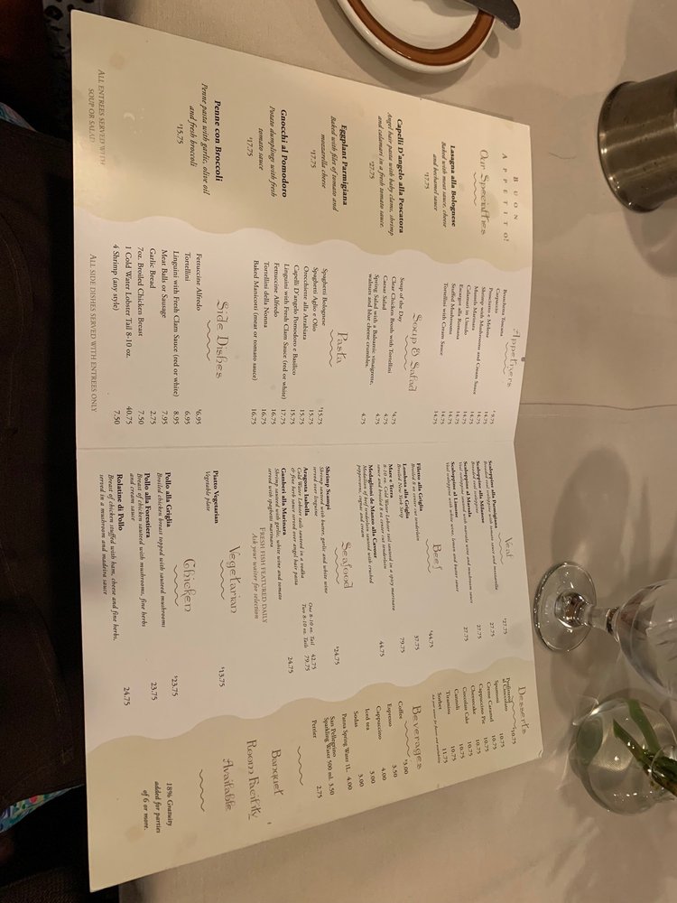 Piccolo Mondo is a charming Italian seafood restaurant in Arlington, TX, offering a romantic and classy atmosphere. The menu features a variety of appetizers, garden salads, and sides, with standout dishes including Bruschetta Toscana, Shrimp & Mushrooms in Cream Sauce, and Fettuccine Alfredo. Customers praise the generous portions and authentic flavors, with highlights like the Osso Bucco and Veal Scaloppine Marsala receiving high praise. The service is excellent, and live music adds to the ambiance. While some customers note high dessert prices, overall, Piccolo Mondo is a top choice for a cozy and delicious Italian meal. The warm hospitality and delicious food make it a must-visit spot in Arlington, with many customers returning for the comforting and satisfying Italian eats.